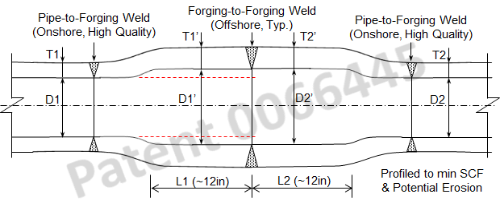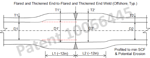 Eliminates weld qualification of excessive wall thickness using traditional upset ends