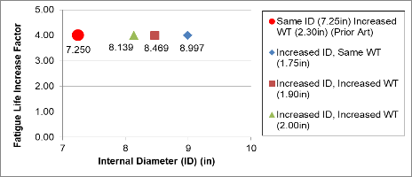 ![]() | Keeping the same pipe ID (traditional upset ends) requires a 7.25in ID X 2.3in | |